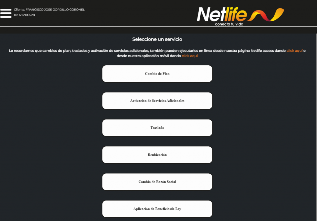 Netlife es la principal empresa proveedora de servicios de internet para todo Ecuador. Con operaciones en 24 provincias y una cartera de más de 500 mil clientes en todo el país, Netlife requería un sistema con la robustez tecnológica necesaria para atender una alta demanda de consultas diarias, que eran manejadas únicamente en sucursales, lo cual generaba un alto tráfico en las tiendas, largas filas y largos tiempos de espera.